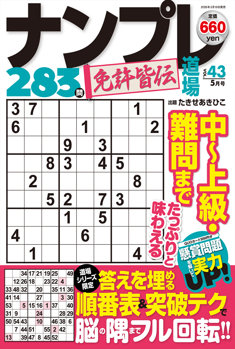 ナンプレ道場免許皆伝252問5月号VOL.43